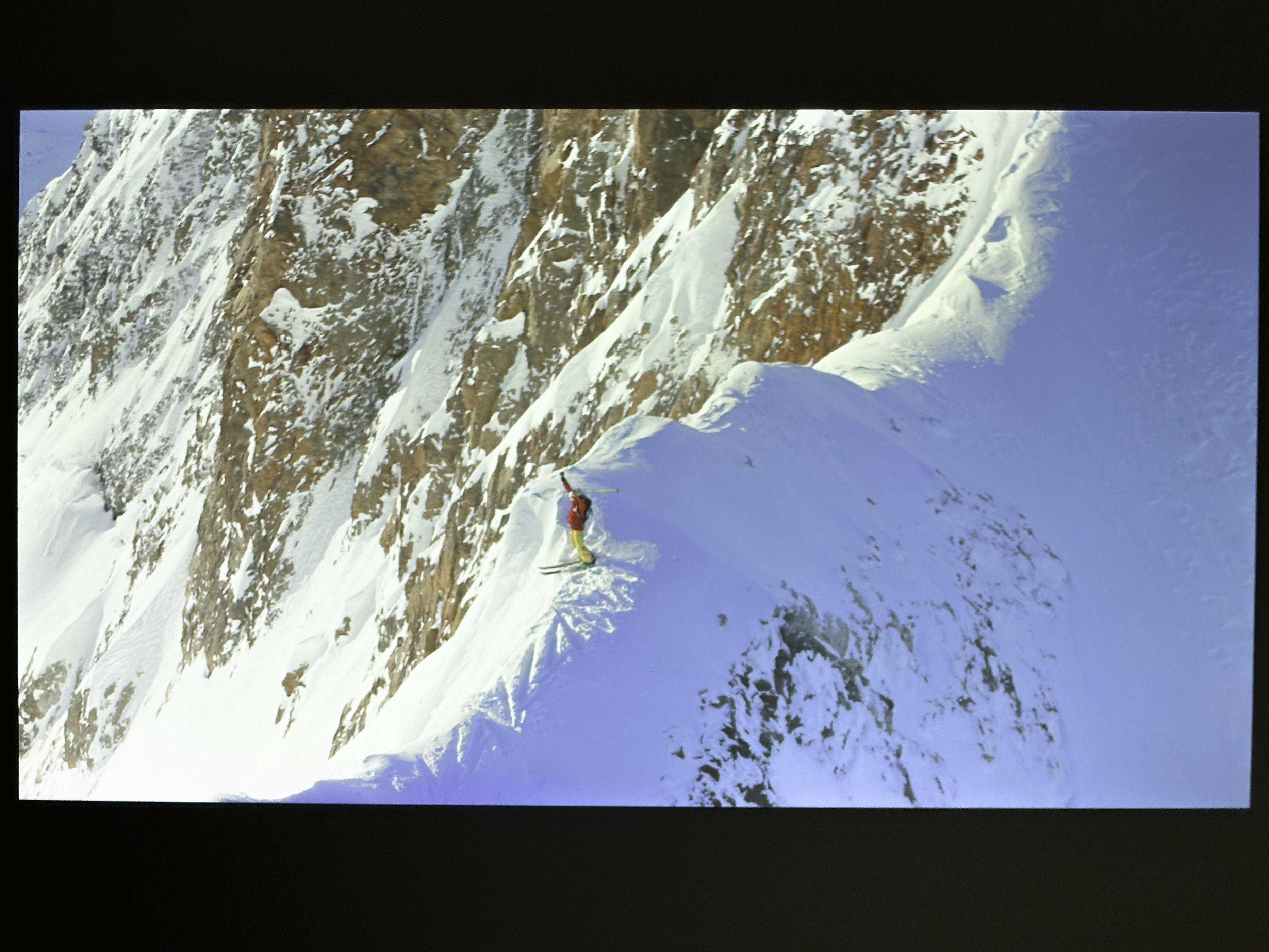 这个是高饱和度,高曝光的雪地场景,得益于这台投影的高亮度,可以看到左上角十分明亮。而左下角则是深色,这个在这张画面中,明暗对比强烈,细节显示得很完整,整个画面很细腻,实际用眼睛看是很舒服的。
