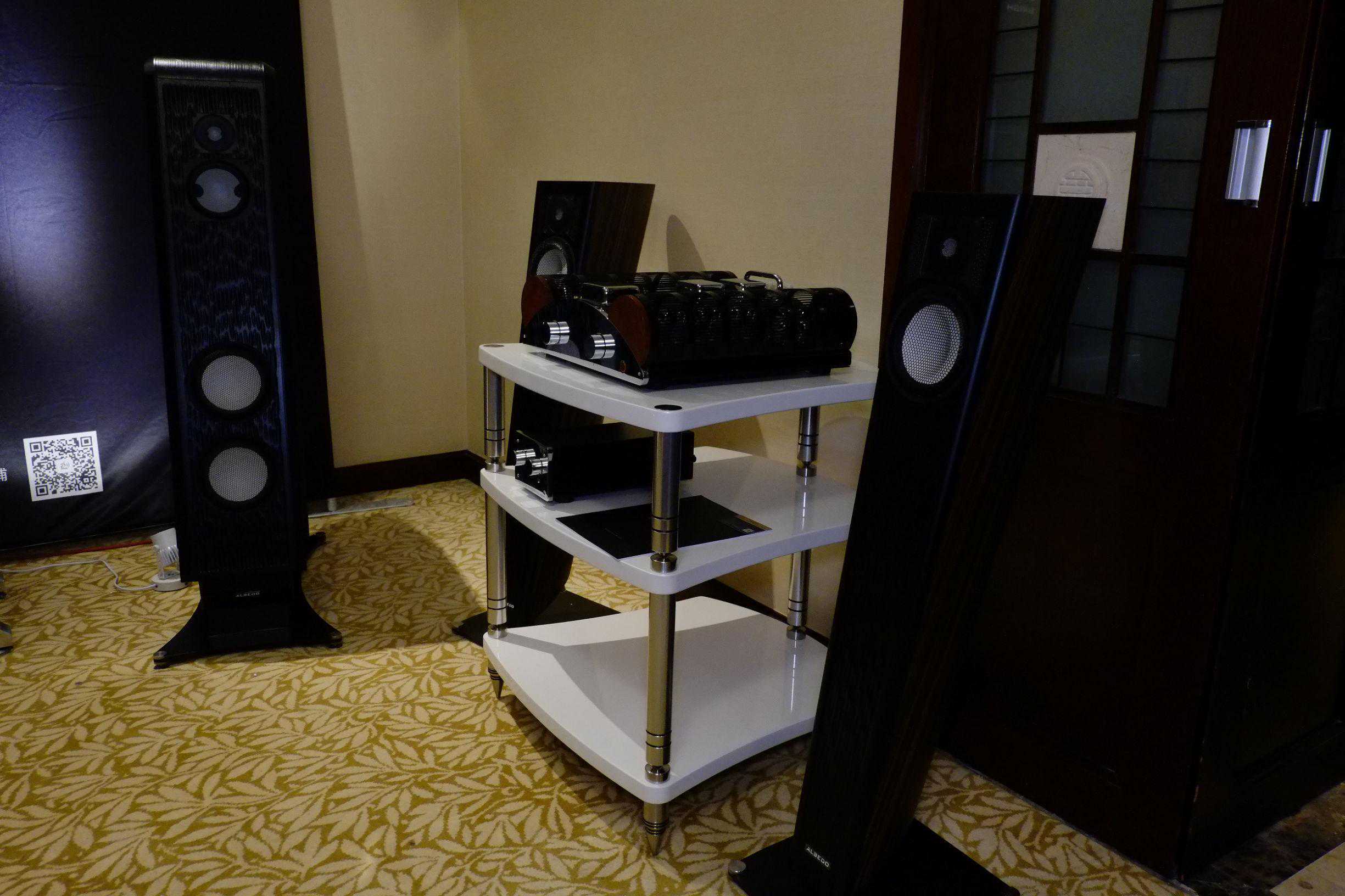 另一边厢则主要展示四件独立板岩箱体,7个单体构成的FISCHERFISCHER旗舰音箱SN/,由AUDIONET的PREG2前级和AUDIONET的MAX单声道后级驱动。前方同样是板岩箱体的书架箱型号SN/SL70,能量感也让人惊喜。