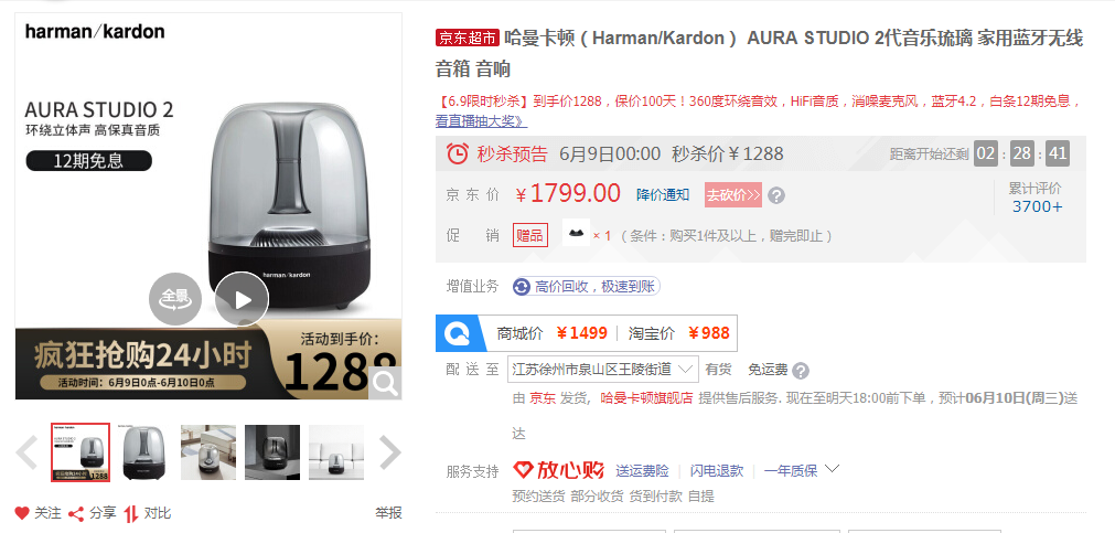 还记得第一次在苹果线下体验店里看到哈曼卡顿玻璃房时的震撼吗?哈曼卡顿AURSSTUDIO2的产品设计真的可以说是一代人心中的经典了。这款音响平时价格在1600元到1800元之间上下浮动,618期间价格为1288元。