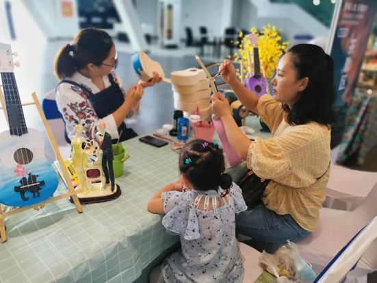 为培养儿童对音乐的喜爱,特别在主会场旁边设置了尤克里里DIY区域,在这里小朋友们可以自己决定琴的外貌、可以在指板上任意画上图案、可以任性的在琴头画上任何LOGO!在这里小朋友们可以充分发挥创造力,拥有一把属于自己的尤克里里!