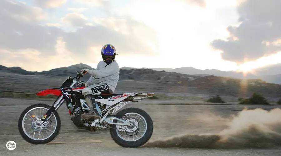 越野型摩托车细分种类非常多,但它们有一个共同点——都是脱离光滑路面发挥出最佳性能的野兽。骑越野摩托车会让骑手们风尘仆仆,体验路面的崎岖坎坷,这对于普通机车的骑手们来说是难以体会的。丛林纵深、泥道跃进、岩石攀爬,不论什么道路状况毫无压力,似乎越野摩托车所要经过的艰难地形永无止境。越野型机车涵盖了低排气量机车和沙漠赛车的所有特点,并几乎全部配备减震器以及超大摩擦力轮胎,能够让你想去哪去哪。