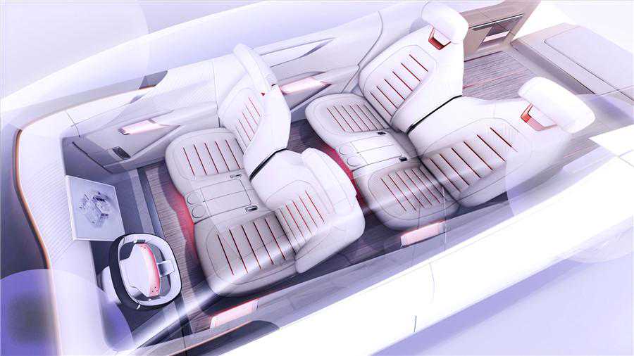 和目前市面上大部分车型不同的是,长安CD701原型车的内饰设计和用料完全不像是一台车,更像是一个移动的居家空间。比如它采用了浅色系作为主色调,增加了车内的温馨感。再比如它采用了木质地板,座椅也仿造了沙发的造型和材质,配合贯通式的前后舱,带给人不一样的车内体验。