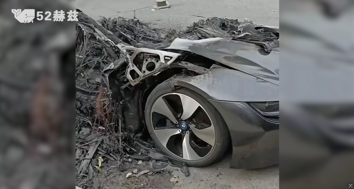 在大概几十秒后,坦克内部的金属零件还能保持原样,就是多了一些“脏辫”出来,就如同这辆碳纤维的宝马i8。
