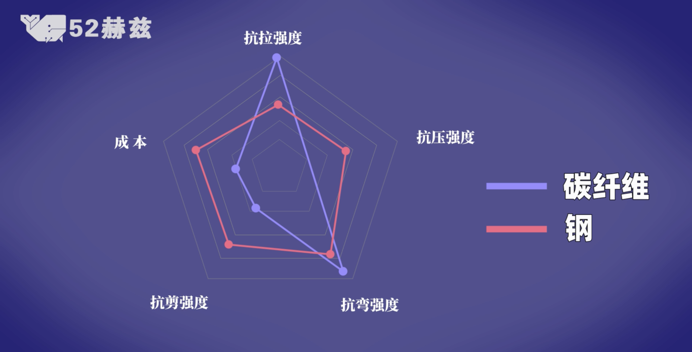 综合来看,碳纤维比较偏科,而相比之下,钢材简直就是六边形战士。