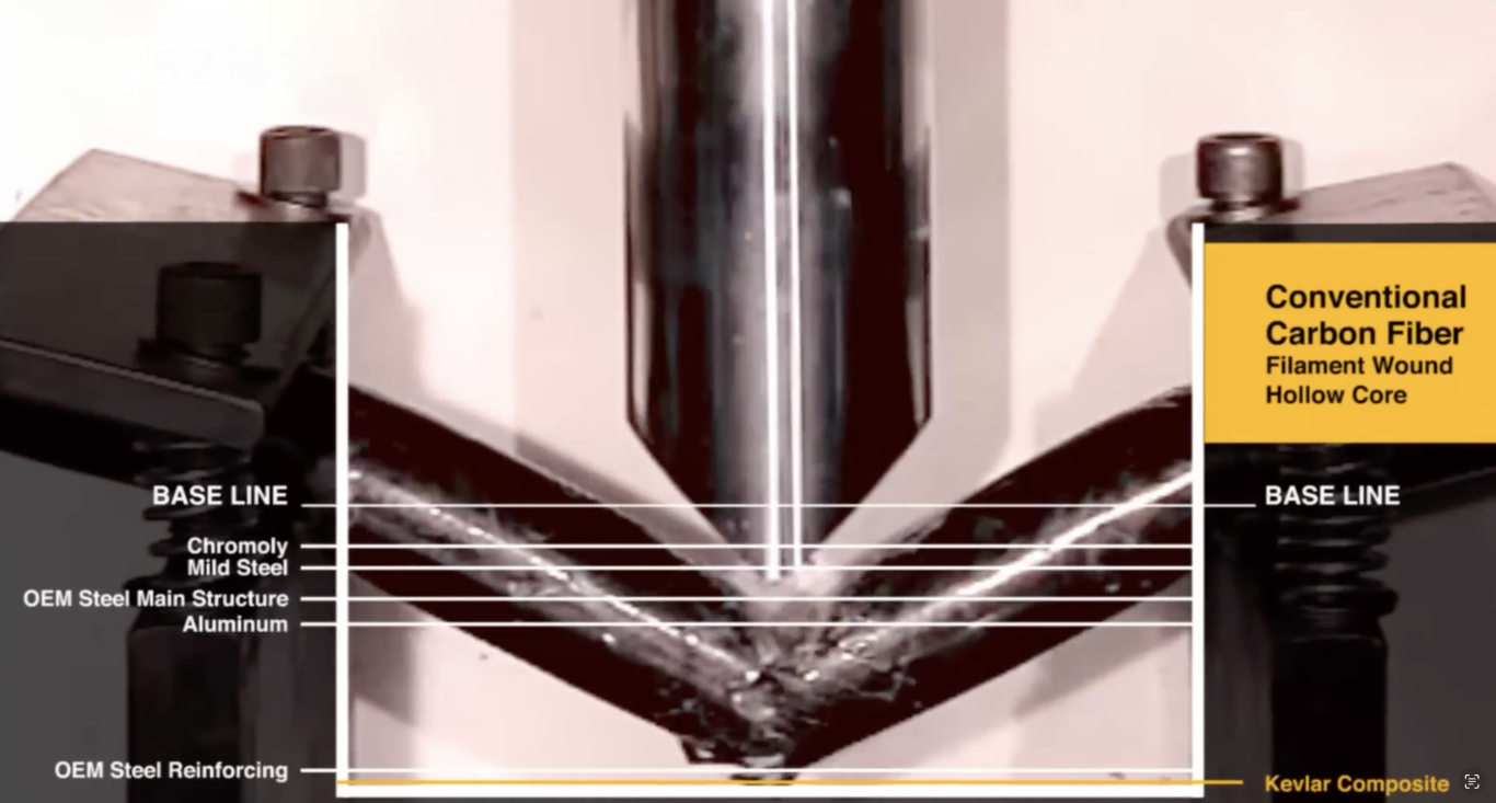 钢材在遇到冲击时顶多就是变形,而碳纤维是直接碎掉。