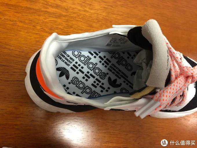 这款跟之前买的纯白色在材质上有比较大的差异,首先是黑色这部分,纯白配色是比较柔软易变形的网面,而这款是比较结实的面料,并且有一些波点状的点缀(仔细一看才发现是adidasadidasadidasadidasadidasadidasadidasadidas);鞋垫则是同款,这里也要提一点:虽然鞋垫非常舒服,不过之前发晒单的时候有值友提到这双鞋穿着的时候脚容易前滑顶脚,虽然我一直没试过出现这种情况,但后来换了一双没有防滑功能的袜子时我也出现了前滑。所以,其实是鞋垫的锅,除了换鞋垫之外就只能穿运动袜了~