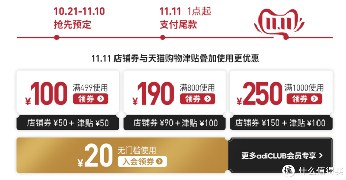 下方的会员券只需要加入adiCLUB就可以领到~无门槛!无门槛!无门槛!