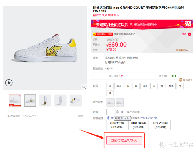 看到这几款鞋子的时候,开心之余,小白鞋Grandcourt还是一秒钟就把我给俘获了,在没有事先去店里试穿的情况下,一冲动就在官方旗舰店下了定金……打算跟女朋友一人一双。而女朋友在呲水王八和放电老鼠两款的反复比较后也决定选择了这款放电老鼠的款式。