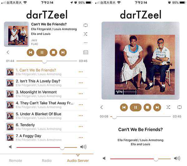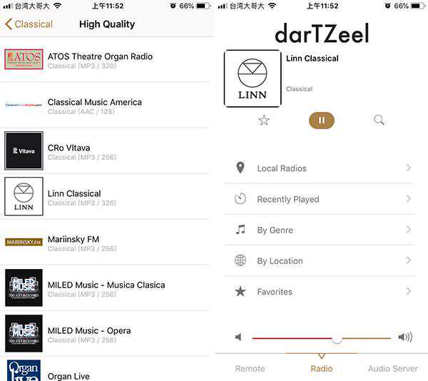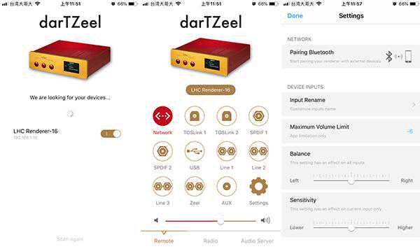 我最推荐的用法就是拉一条网路线,连接LHC-208播放您家NAS里的音乐,用智慧型手机来控制一切。darTZeel的串流App也是千呼万唤始出来,头几年使用LHC-208都得藉助于其他第三方软体。现在不必了,他们自家推出的软体很好用,资讯很清楚,画面很简洁,操作也很流畅。如果您还没使用过数位串流播放音乐,我认为您用过LHC-208之后,就会喜欢上这种听音乐的方式。