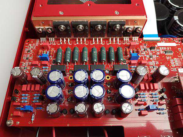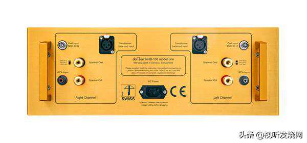 放大线路上,一共用上两对OnSemiconductor的MJL1302(PNP)与MJL3281(NPN)电晶体,锁定在同样电镀成金色的铝合金板上,紧连在散热器上,可连续输出175W(8Ω)。