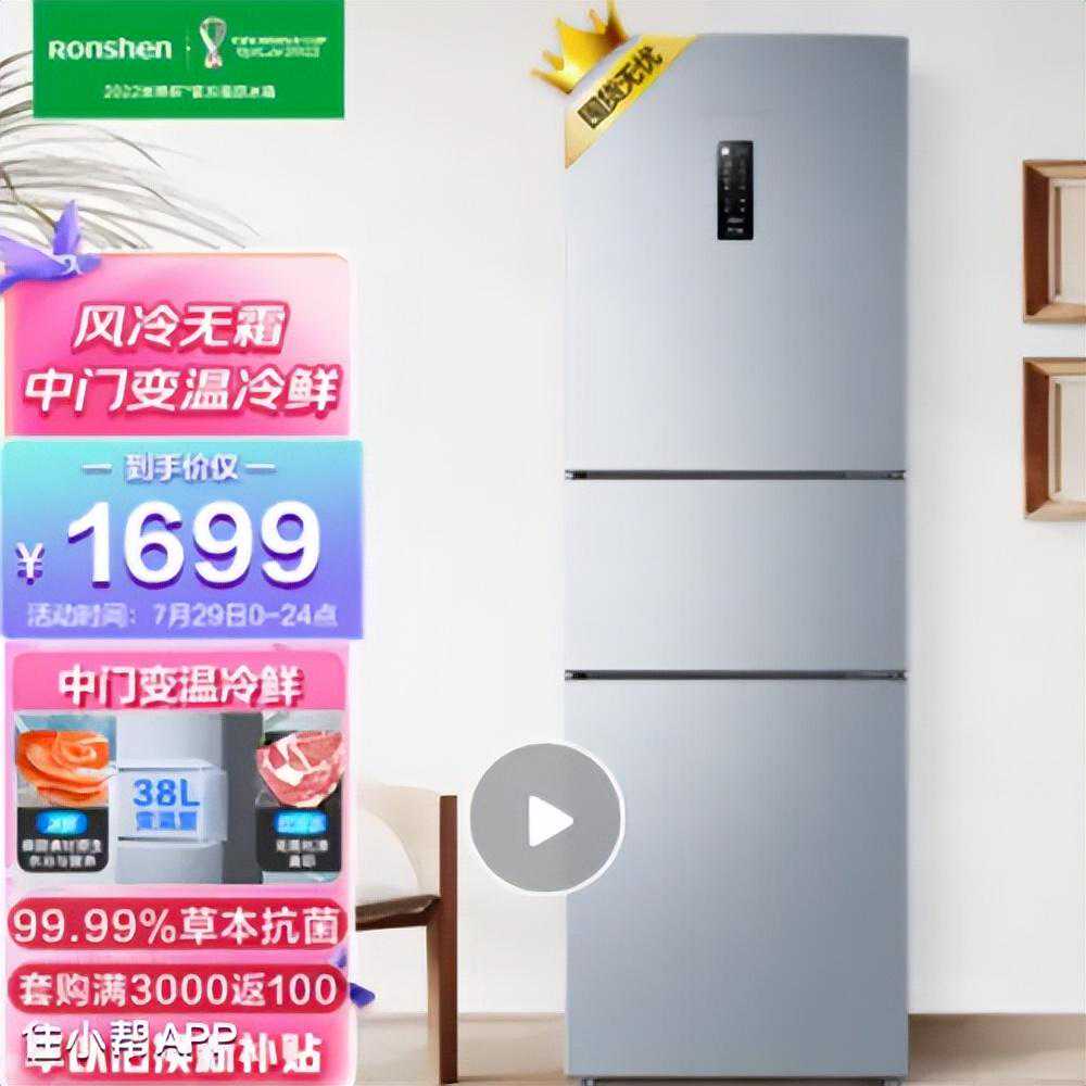 优点:三门三温区,中门软冷冻肉类存放去除无需解冻,方便更人性化。2天才用1度电,绝对省电。它的温度自感应系统,根据外界温度自行调节温度,环保节能。如果喜欢三门冰箱,并且注重节能静音的,1000出头点的预算就选这款。