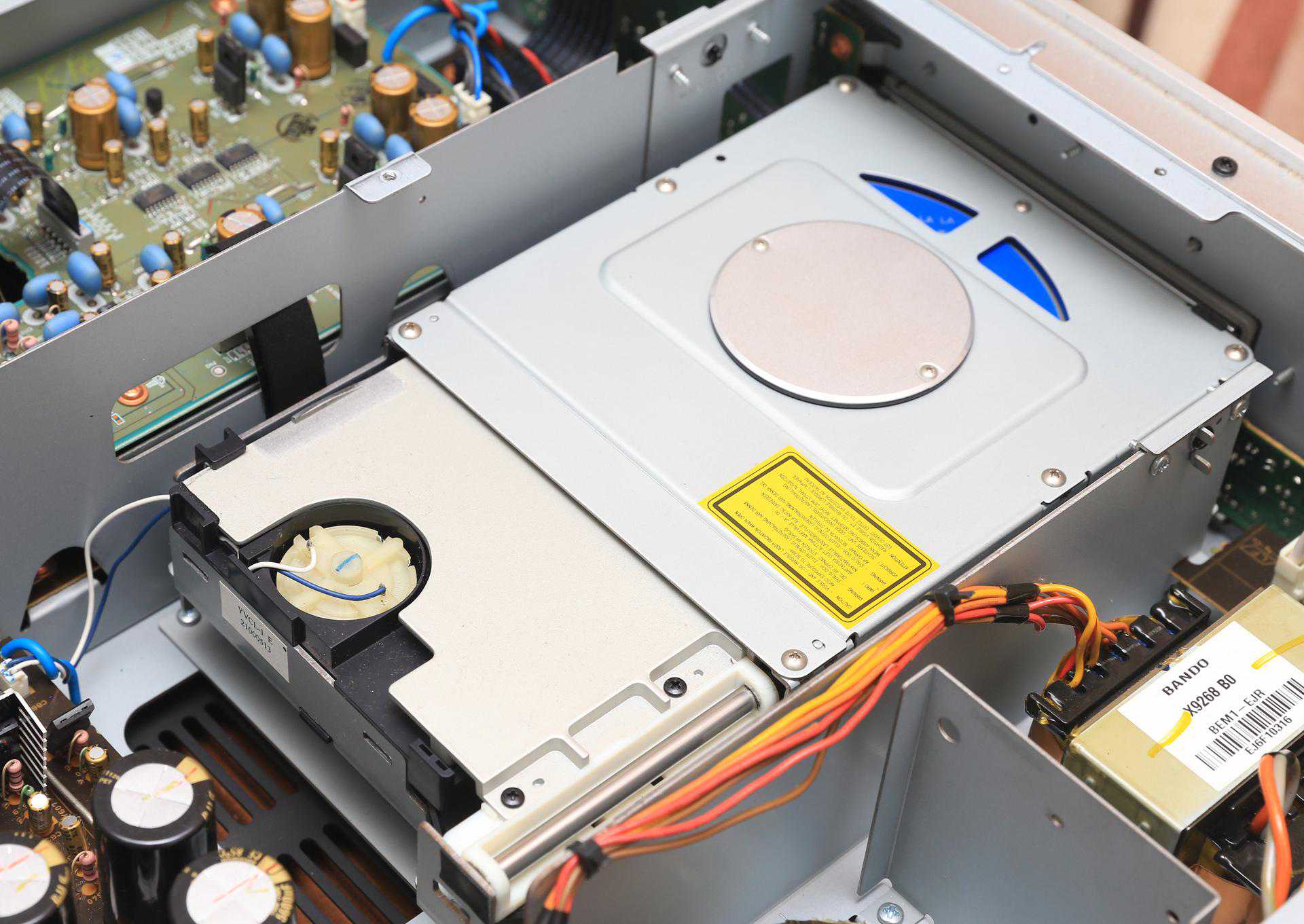在屏蔽方面,雅马哈S2000也颇下功夫,打开盖子即可看到里面被划分为了几个区域,可以更好地更好地隔离电磁干扰。此外还可以看到有一片贯穿前后面板的横杆,可以更好地增强CD机箱的刚性,也可以在一定程度上减轻震动。
