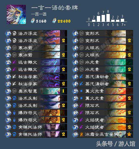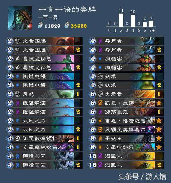 第二套是一套节奏法卡组,不过在后期又变成了元素法,可以说是综合了两者的忧点吧。既可以在前期获得一定的优势,也可以在中期依靠元素和法术来把握节奏,最后还有变身后的强大战力,是一套前中后期都有一定强度的卡组。