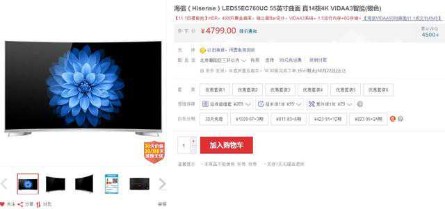 355吋曲面超高清海信EC760UC电视售479955吋曲面超高清海信EC760UC电视售4799